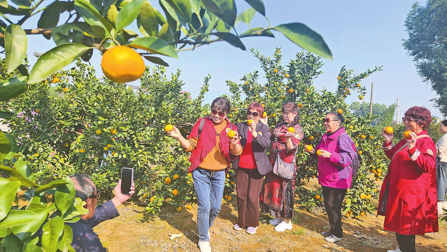 来自岳阳的游客在黄家湖橘子园体验采摘的乐趣。孙殉华摄