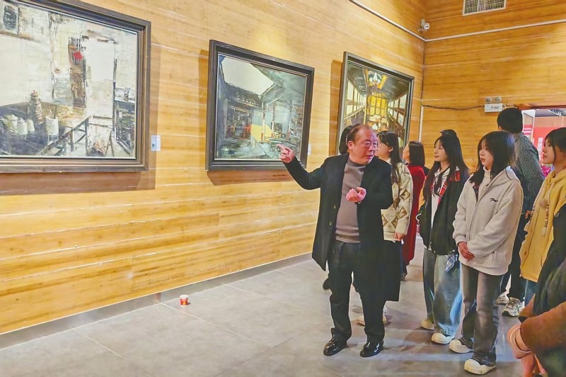 创作之余,张清兼顾高校教学工作,长期将红色文化传播与美术教学相结合,注重引导青年学子挖掘红色题材创作价值。展览现场,他围绕参展作品的构图设计、技法运用及创作背景,为湖南工艺美术职业学院的学生开展现场教学讲解,细致分享红色主题创作的思路与心得,助力年轻一代深化对红色文化的理解,传承红色艺术创作精神。