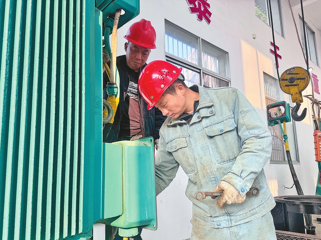 12月10日,在资江赫山区兰溪镇羊角村段油麻潭电排拆除重建工程施工现场,工人们正抢抓晴好天气进行消力池底板钢筋板扎施工。中国水利水电第八工程局益阳工区工区长姚柳介绍,该工程是湖南省洞庭湖区重点垸堤防加固工程的一部分,自11月1日动工以来,施工方倒排工期推进施工,预计明年3月可完工。