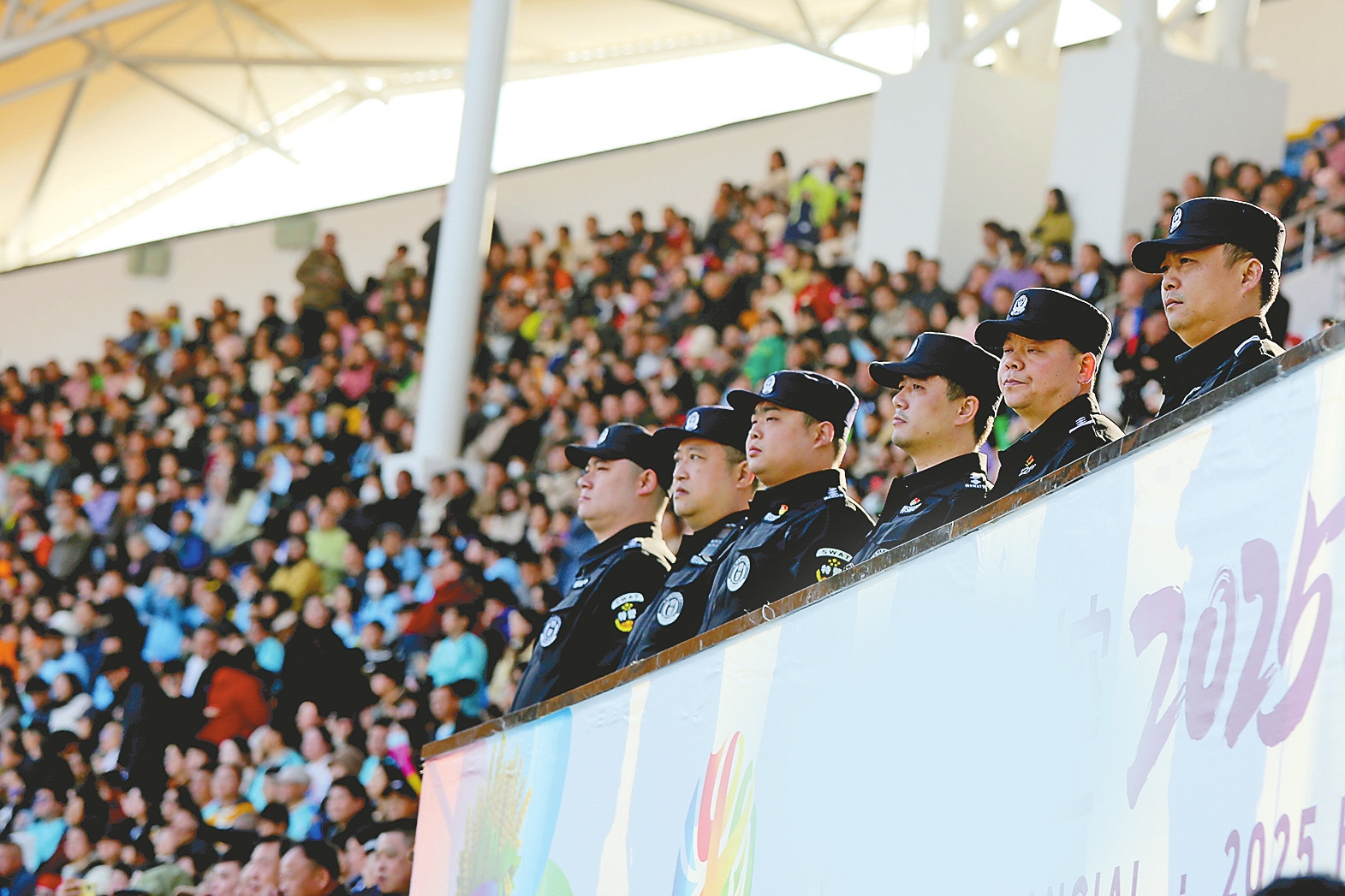 2025年12月14日,市公安局民辅警在“湘超”赛场执勤。