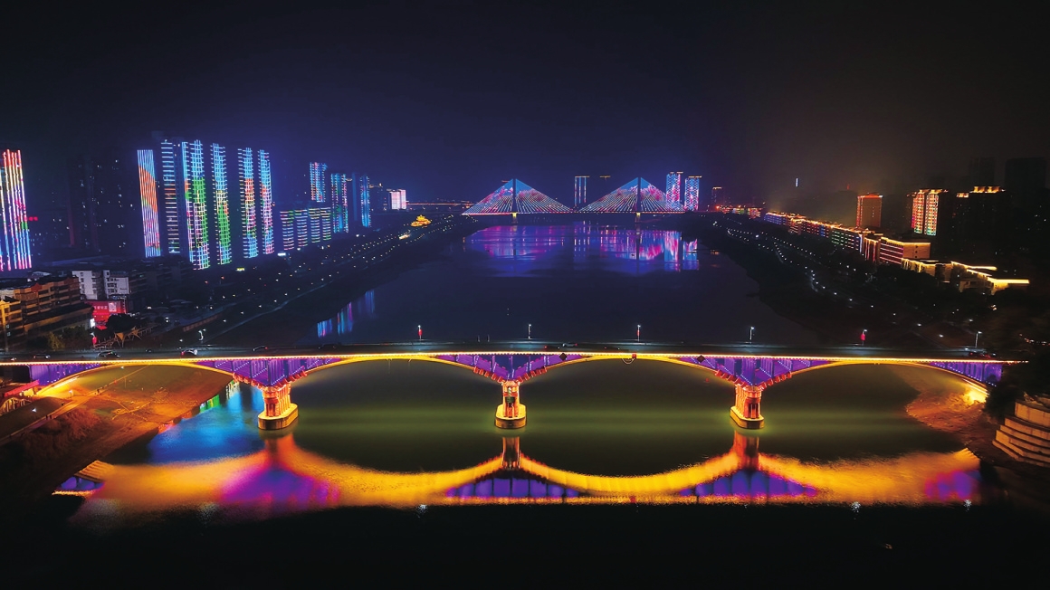 在资江之畔,三座大桥与江水、青山、楼宇的灯光交相辉映,共同演绎壮阔的“江景史诗”;明清古巷旁,三国文化长廊通过声光电技术,徐徐铺开一幅生动的历史画卷;益阳大道上,商圈的璀璨霓虹与背街小巷的“明灯”相连,串联起热闹的“都市潮玩”图景;奥林匹克公园内,动态光影场景则让“运动过年”成为健康新潮的新春风尚。