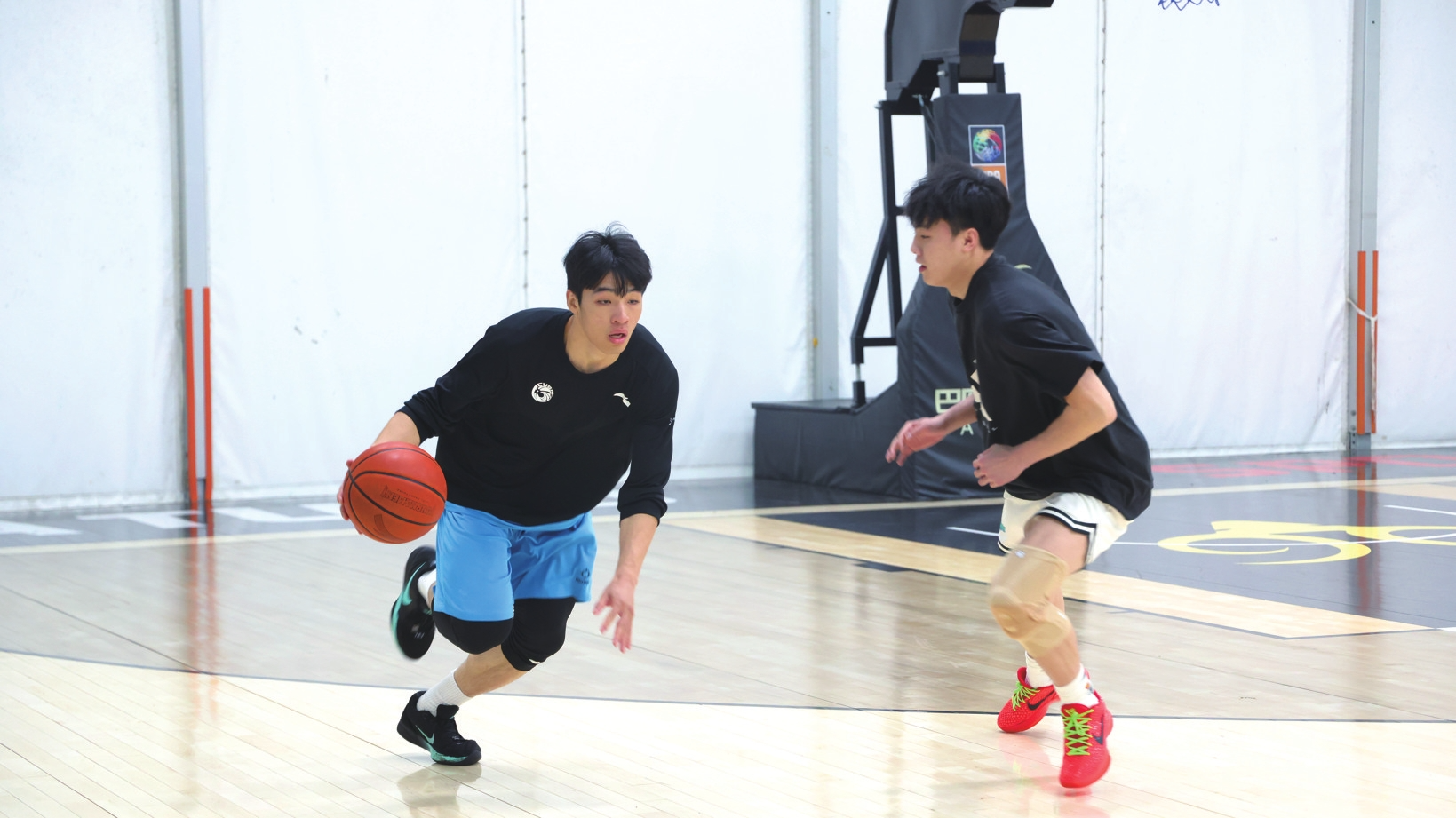 队员们陆续到场热身,运球声、投篮声此起彼伏,首次合练大家在教练组带领下神情专注地投入训练,拉伸、跑篮、分组对抗等项目轮番展开,现场气氛热烈而有序,教练在场边密切关注着队员们的表现,不时上前纠正动作、布置要求。训练日程堪称“硬核”:分组对抗打磨战术配合、针对性强化体能短板训练等。“要让球员从肌肉记忆到心理状态都调整到最佳。”助理教练补充道,集训不仅仅只为比赛,更为培养本土篮球人才。场馆墙上“为益而战”的横幅格外醒目,队员们眼神灼灼:“进了这个队,就要拼尽全力给家乡争光!”