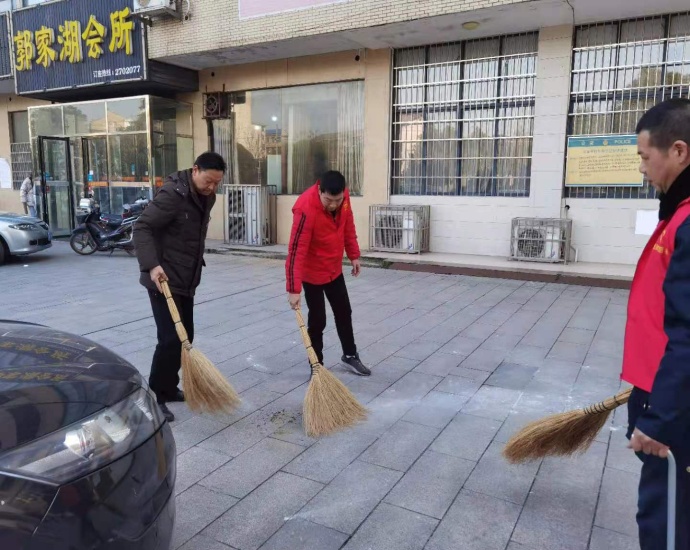 全体党员首先来到王家亭社区党群服务中心,听取社区工作人员对本次活动的安排和意见,随后中心工作人员在社区领导的统一安排下,利用扫把、簸箕、抹布等工具对郭家湖公园周边进行卫生大清扫及对楼栋内垃圾、非法小广告清理,并对社区群众在楼栋内乱堆乱放、乱丢垃圾等不文明行为进行了劝导,同时对郭家湖公园周边进行清扫。