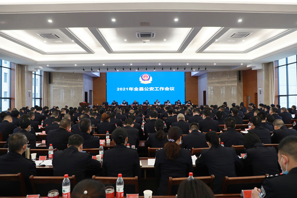 会上回顾总结了2020年全县公安工作取得的成绩,深入分析了当前面临的形势,明确了2021年全县公安工作目标,并就2021年全县公安工作做了具体安排。一是坚持底线思维、主动进攻,全力维护大局稳定。牢固树立总体国家安全观,强化阵地防控、加强反恐防恐斗争、强化风险化解、常态化抓好疫情防控,切实加强排查管控和预警处置,着力维护社会大局稳定。二是坚持关口前移、打防并举,持续推进平安建设。紧紧围绕人民群众反映强烈的突出治安问题,严打各类突出犯罪、提高整体防控水平、全力防事故保安全,有力保障人民群众生命财产安全,不断提升群众安全感满意度。三是坚持主动作为、夯实基础,不断筑牢发展根基。牢固树立大抓基层、大抓基础的导向,不断完善保障体系、加强基础建设、推进科技信息化手段建设、强化服务管理工作,不断增强基层实力、提高基层战斗力,推进公安工作转型升级。四是坚持政治建警、严管厚爱,打造过硬公安队伍。按照“对党忠诚、服务人民、执法公正、纪律严明”的总要求,着力抓好政治建警、党风廉政建设、实战练兵和法治建设等工作,努力打造“四个铁一般”的过硬公安队伍。