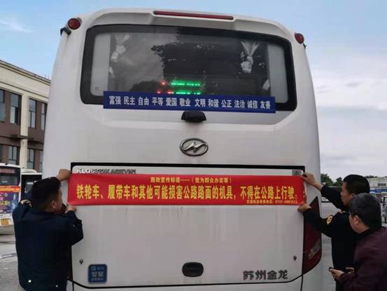 公交车,是百姓最喜欢的出行交通工具之一,廉价方便、舒适安全。作为贴近人民群众日常生活的一种公共平台,大通湖交通部门积极创新、合理利用,以悬挂、张贴路政宣传标语的方式,打造“路政宣传移动平台”,许多搭乘公交车的乘客纷纷叫好:“这样的宣传形式,很醒目,有效果!政府真的很用心了!”