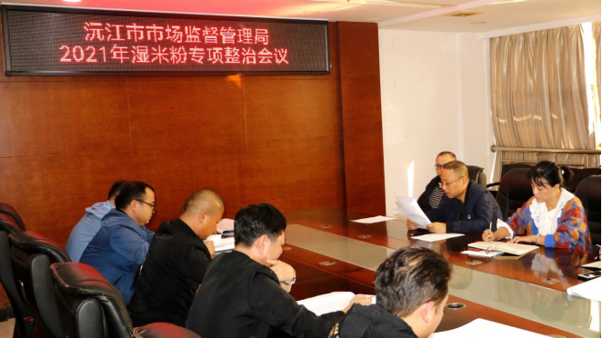 10月12日,沅江市市场监督管理局组织召开湿米粉、湿面条生产小作坊专项整治工作会议。
