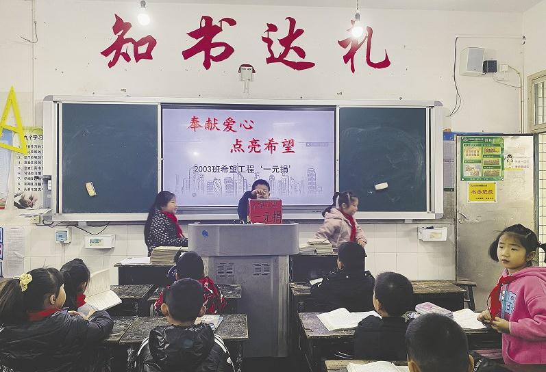 3月25日,安化县长塘镇完小组织开展希望工程“一元捐”活动。此次活动由共青团安化县委发起,倡导共青团和少先队组织开展公益捐赠。捐赠标准为每人1元钱,多捐不限,所捐赠的款项将全额上缴益阳市青基会希望工程“一元捐”助学基金。 陈绚 摄