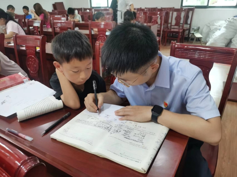 暑假补习班由安化县行政审批服务局乡村振兴工作队队员、村大学生志愿者为孩子们提供免费辅导。旨在帮助在外务工人员切实解决子女假期“看护难、教育难”问题,补习班主要以作业指导为主,兼顾开展爱国主义、防溺水、反诈骗警示教育,并提供农家书屋的图书借阅服务。孩子们通过暑假补习班不仅可及时完成暑期功课,还可增长知识面,让孩子们拥有一个“安全、健康、快乐、充实”的假期。