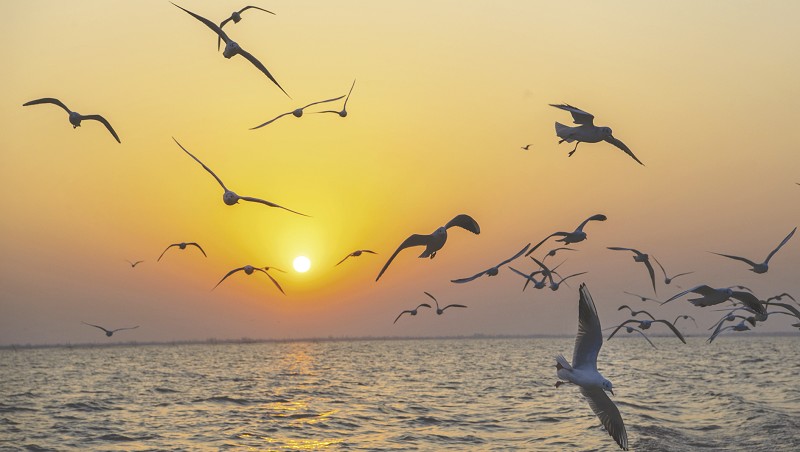 从益阳城区出发,经益南高速,下千山红互通,不过60分钟车程,就来到了大通湖的南岸。12.4万亩的大通湖,烟波浩渺,大气非凡。因是晴日,太阳映照,波光粼粼,湖底绿茵茵的水草从清澈的湖水中透出来,柔得如丝带,随细浪飘荡,与岸边依依垂柳应和着。若是遇上大风雨天,大湖还有它“狂野”的一面,那时湖面浪高涌急,一波波的白色水线由远而近,快速放大成一堵不高的“水墙”,“哄”“哄”地撞碎在岸边的水泥护坡上,虽无钱塘潮那般壮观,却也比一般江河的“小家碧玉”要来得激烈。最佳的观景地点在大湖的东岸,那里有11公里的环湖观景道,有千亩成片的荷塘,有入湖湿地。春游绿境花海,夏赏碧荷万顷,秋吟稻浪金黄,冬观鸟翔鱼跃。“特别是冬天来看鸟,当真是万鸟翔集,超过10万只候鸟在大通湖过冬,说不定你就邂逅了一只让自己心动的候鸟。”大通湖生态投资发展有限公司负责人康朝辉掰着手指头说,这些鸟类包括国家一级保护野生动物青头潜鸭、白鹤,国家二级保护野生动物小天鹅、水雉,以及苍鹭、红嘴鸥、骨顶鸡等等。与大自然的这些精灵共处,让人心神宁静、远离喧嚣。