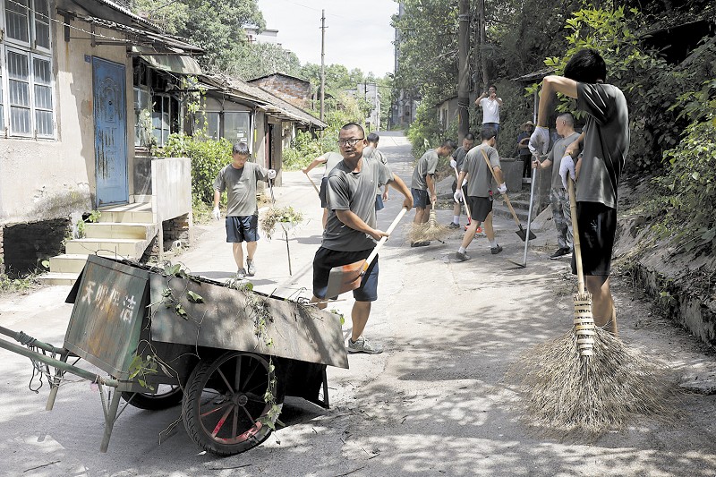 “来人帮我搭把手,把这个沙发搬走。”8月10日,赫山区武装部基干民兵来到会龙山街道志溪河社区,联合街道共同开展环境卫生综合整治行动。