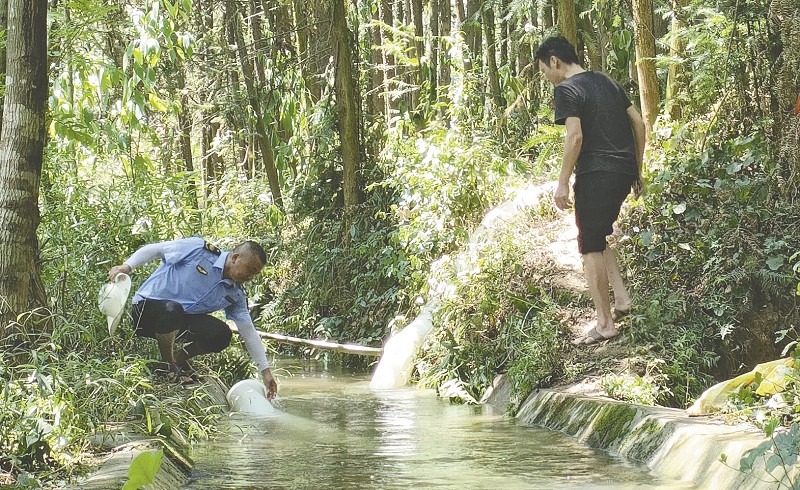 7月中旬以来,沾溪河水位不断下降,大片稻田焦渴难耐,中稻、晚稻面临着严重减产的威胁。正当村民们一筹莫展之际,桃江县应急管理局防汛抗旱干部进驻村中,给村民们调配了1台移动泵车,配置了1个大口径抽水管和3个排水管。泵车排水系统启动后,沾溪河河心的水被吸进抽水管,经过泵车内的一个大“泵房”后,沿3个排水管输送到山坡上的稻田里,解决了村民的燃眉之急。移动泵车提水灌溉面积达1500亩,平均每小时提水1200吨。目前,补水的稻田里,秧苗返青,生长恢复正常。