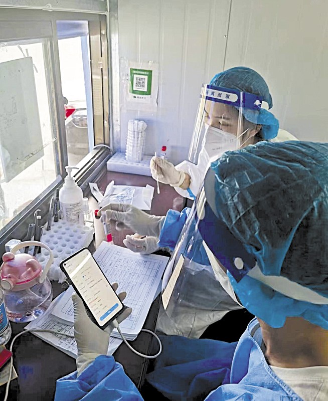 8月27日,沅江北高速公路出口处,当地疾控人员正在给入沅市民采集核酸,严把防控关。 刘文峰 摄