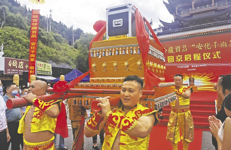 9月1日,安化县举行故宫珍藏贡品安化千两茶启程回京仪式,欢送回乡“省亲”的这截珍藏200多年的安化千两茶返宫。故宫千两茶在安化黑茶博物馆展出260余天,参观人数18万人次,向世人展示了安化黑茶文化和工艺传承画卷,更为安化黑茶文化研究和产业发展注入了新的活力。