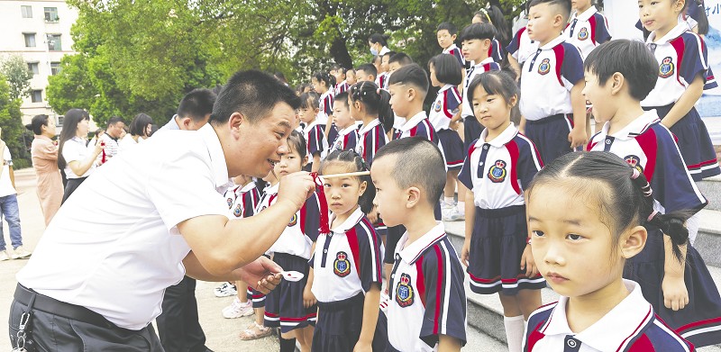 9月8日,益师附小举行第一届喜迎孔子节“仁智少年 开笔向学”开笔礼。仪式上,老师在新生额头点朱砂,意为开启智慧,以此寄托对孩子美好的祝愿。