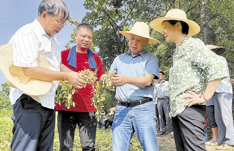 省、县农业专家一行到安化县蚩尤故里生态农业有限责任公司“安化小籽花生”科研实验基地测产。