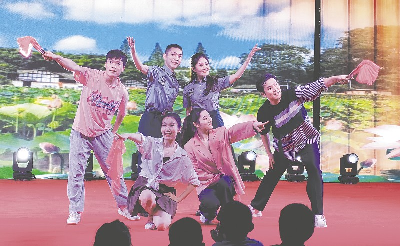 文艺汇演以热闹的开场舞《鼓舞银城》拉开序幕。接下来,花鼓表演唱《喜看山乡》、舞蹈《今天是你的生日》、花鼓脱口秀《新农村赞》、东北二人转等精彩节目轮番上演,将现场气氛推向一个又一个高潮。演出中,社区工作人员还通过穿插创文知识有奖问答、小游戏等寓学于乐,现场欢呼声此起彼伏,气氛热烈。