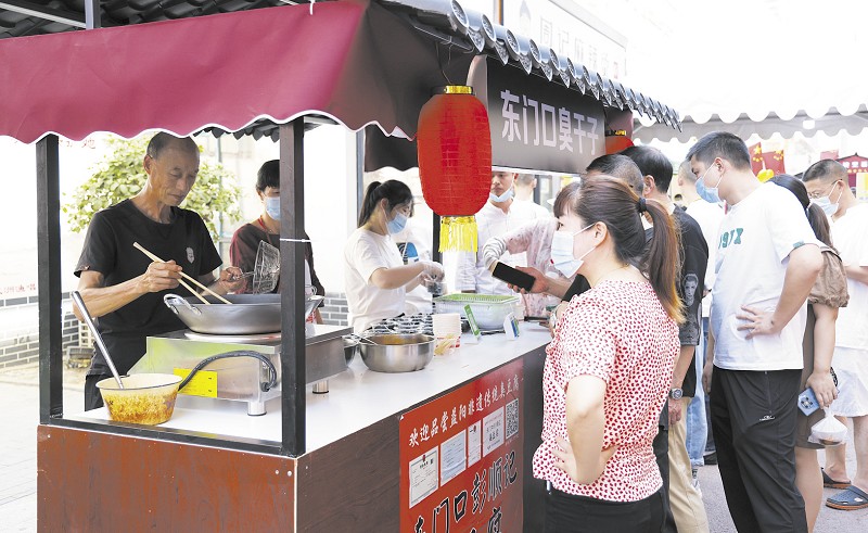 今年国庆假期,资阳区推出“古韵古城 资水资阳”2022国庆美食文创百乐汇活动,130余家商户汇集于商业样板街至明清古巷沿线、三国故城公园等地,为市民游客提供一个美食、文创、夜市、购物等业态丰富的集市。“这个酱干好吃!”“推荐纯手工擂茶!”当日,“桥北味道”体验店内,蒿子粑粑、油碗糕、酱干、泡菜、馄饨等各色小吃琳琅满目,吸引市民游客纷至沓来。“资阳小吃”闻名遐迩,今年,资阳区推出了“资阳小吃”2022年入选名录评选活动,崔娭毑牛肉串、肖老倌馄饨、姐弟俩麻辣烫、裕大酱园食品等30味小吃入选提名名单。国庆期间活动街区专设的“桥北味道”“晓月明楼”两家资阳小吃体验店均可尝鲜,市民游客也可选择前往各个品牌的门店、摊位购买相应产品。