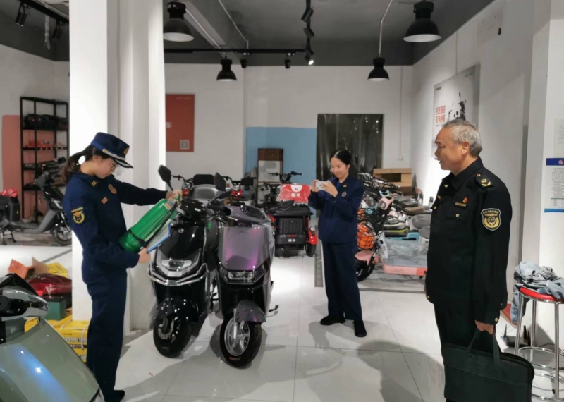 在检查中,执法人员认真对照电动车新国标要求,仔细查看在售电动车的铭牌、外形尺寸、产品合格证等信息,着重检查经营者的证照是否齐全、进货渠道是否正规,销售的电动车是否获得CCC认证并符合强制性国家标准,是否存在销售“三无”产品、非法改装、拼装、篡改电动车以及价格欺诈、虚假宣传等违法违规行为;各销售门店是否严格落实消防安全主体责任,消火栓是否被掩盖遮挡、消防器材设备是否完好有效,充电区域电气线路是否按规定敷设,店内是否随意堆放可燃易燃物品等。