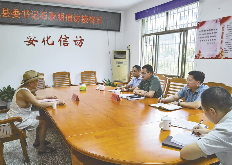 “请您放心,我们一定会依法依规解决您的合理诉求,请务必相信党和政府。”8月31日正午,骄阳似火,安化县委书记石录明还在县信访接待中心向来访的群众讲解着法规政策。接访中,他与来访群众亲切交流,仔细倾听信访人的陈述,认真记录相关情况,并逐一提出解决意见。