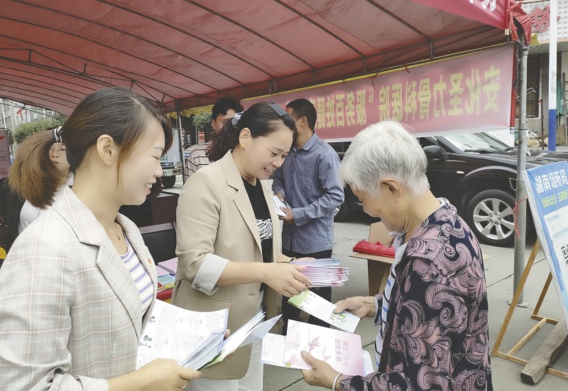 10月10日,安化县滔溪镇滔东社区,村干部向群众宣传《信访工作条例》。