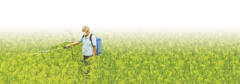 工作人员在绿色防控集成技术核心示范区科学使用化学农药。