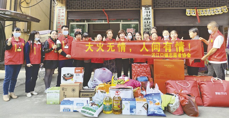 10月14日晚,高蓉家中失火,住房烧得面目全非,损失惨重。幸好丈夫蔡松云在家,将两个孩子从大火中救了出来。两个孩子需要抚养,妻子又无工作,自己跟着人家从事装修这行,收入也不稳定,蔡松云愁云满面。泥江口镇志愿者协会会长罗织凡闻讯后,和几名志愿者实地走访,看到陷入困境的一家人,决定在志愿者群中为他们发起募捐,帮助他们渡过难关。