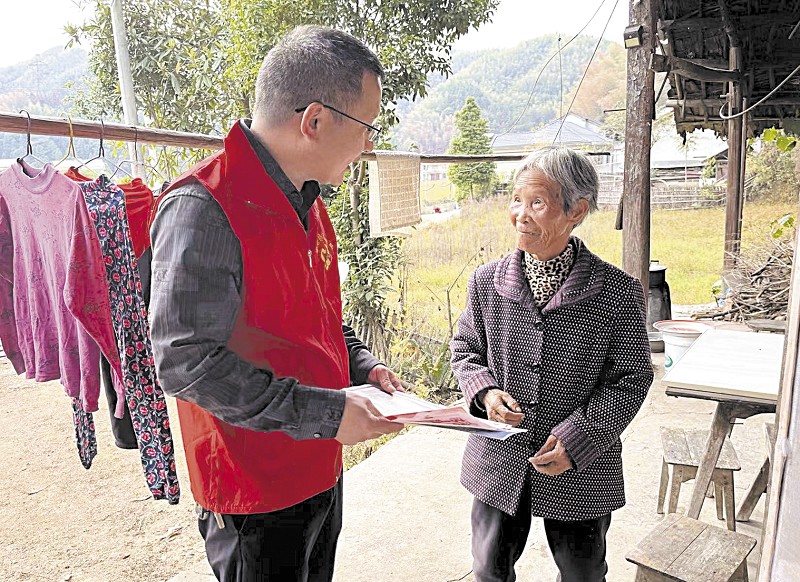 安化交通运输局党员干部入户宣传森林防火政策。