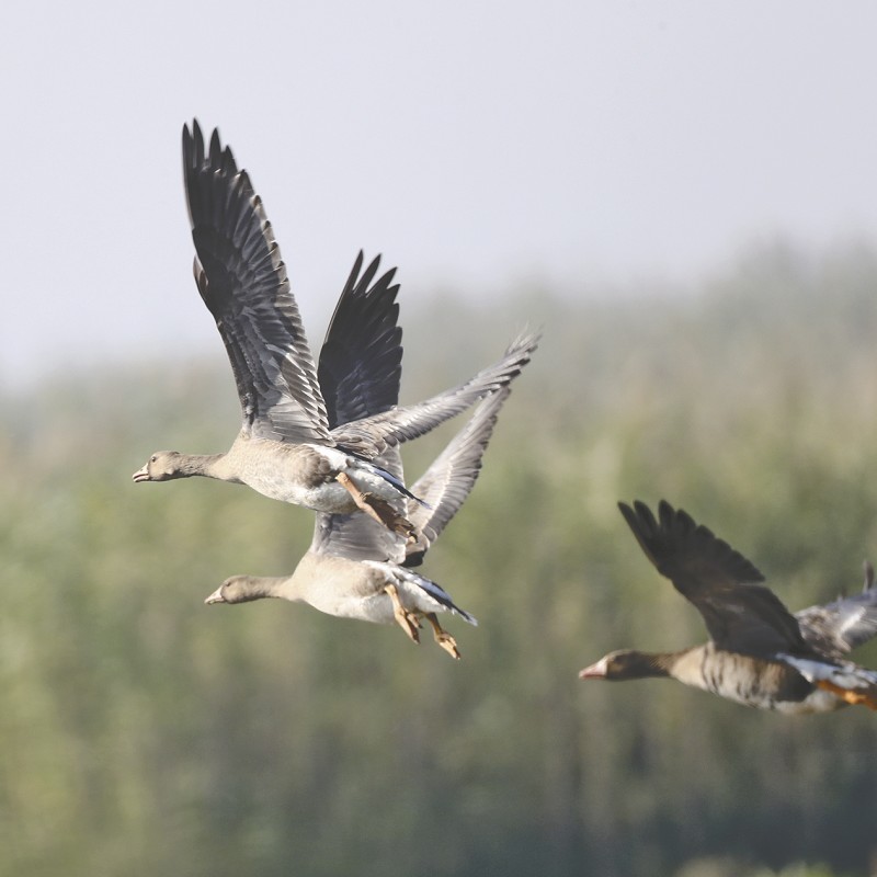 上图:展翅飞翔的白额雁。