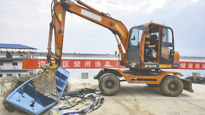 在销毁现场,一台挖土机将钓竿压断、碾碎,将船只捣烂,然后装上卡车运走。资阳区农业农村局负责人冯妩娟表示,该局今年充分利用“人防+技防”的手段,多次组织开展打击非法捕捞的专项行动,取得了一定成效,确保了禁捕退捕各项政策得到落实。至目前,共组织开展了48次联合执法专项行动,立案查处非法捕捞行为13起,移送公安机关受理11起。