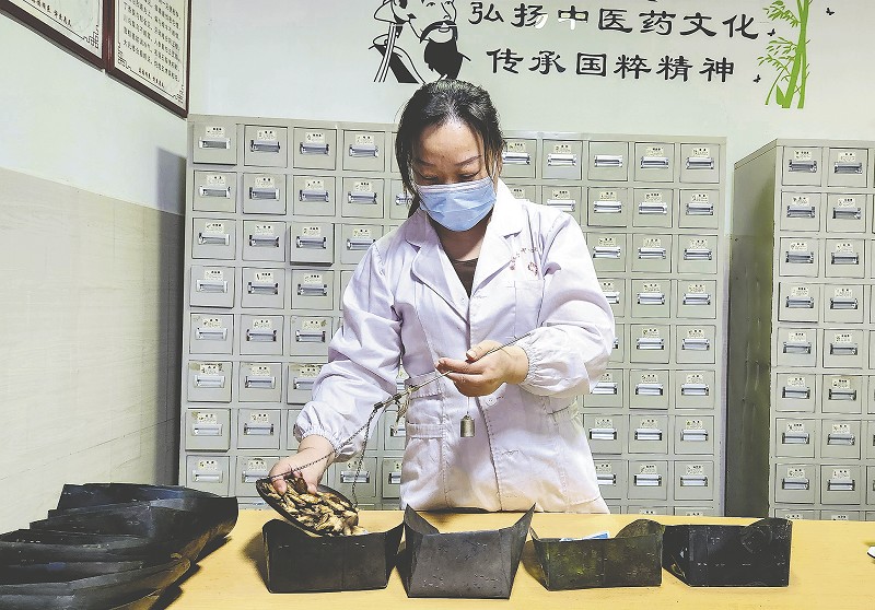 中医馆中医师在配药。孙殉华摄
