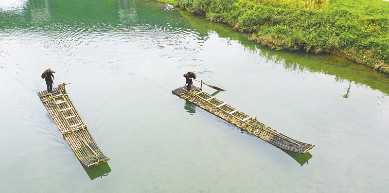 排帮号子响溪间。(未署名图片由安化县委宣传部提供)