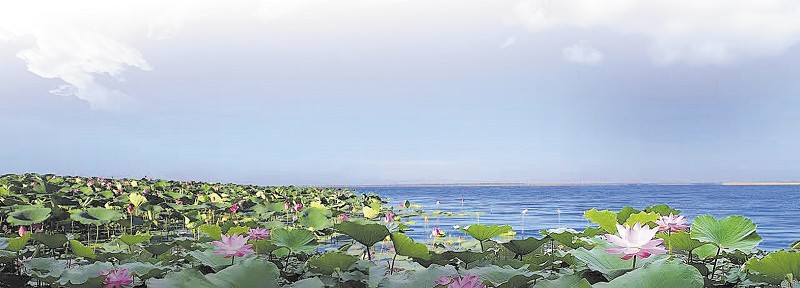 大通湖里的万亩荷花,有助于改善水质,也是观光旅游的景点。徐钢摄