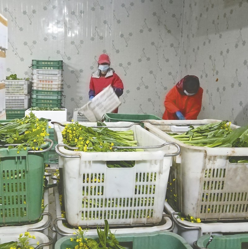 浪拔湖镇红星村经过培训的菜农,正在分拣包装蔬菜。