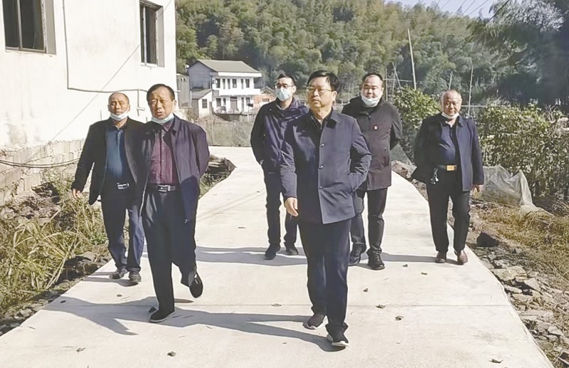 县政协党组书记、主席杨凯波(前排一)督导沾溪镇杉木村软弱涣散基层党组织整顿工作。