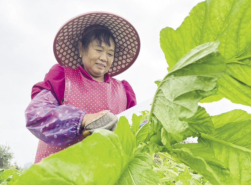 村民采收榨菜。