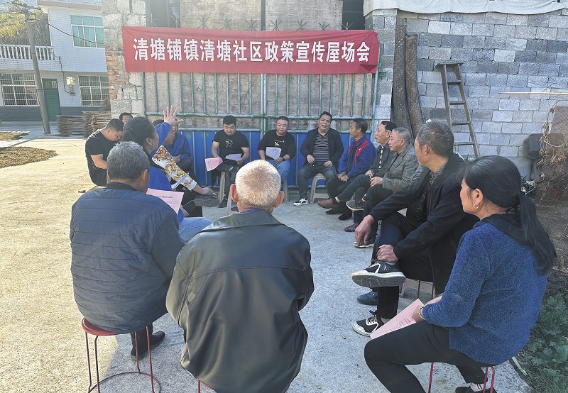清塘铺镇清塘社区举行政策宣传屋场会。