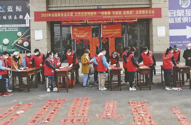 无联不成春,有联年味浓。1月12下午,赫山区教育局邀请9名教育系统书法家在赫山南市场商业广场现场写春联、送春联,积极开展“迎新春,写春联,送祝福”为民办实事志愿者活动,为即将到来的春节增添浓浓的节日氛围。