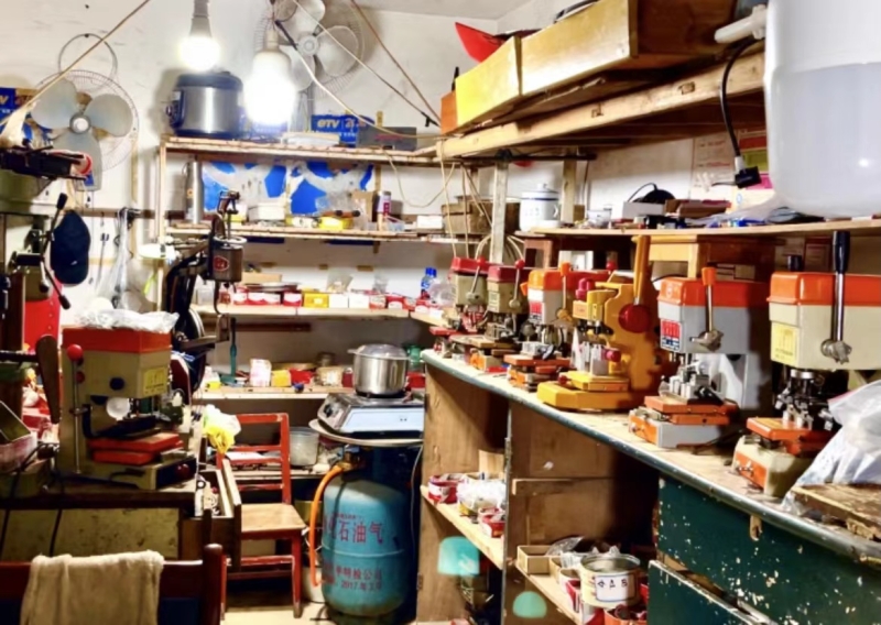 在康富南路旁的一条巷子里,有一间充满年代感的钥匙制作小门店,门店内放满了置物架,正中间的一个小长桌上摆放了一列配钥匙机,这便是一把把钥匙“降生”的地方。