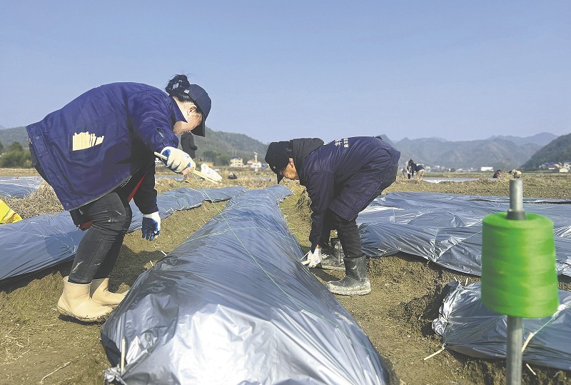 春日暖阳下,安化县大福镇的田野开始热闹起来。2月26日,木溪村的村民穿着套鞋挽起裤角下田作业。她们分工合作,有的拿着扫帚,轻轻地平整苗床;有的插上竹棍,牢牢地覆盖上地膜。好一幅生机勃勃的备耕春耕图。