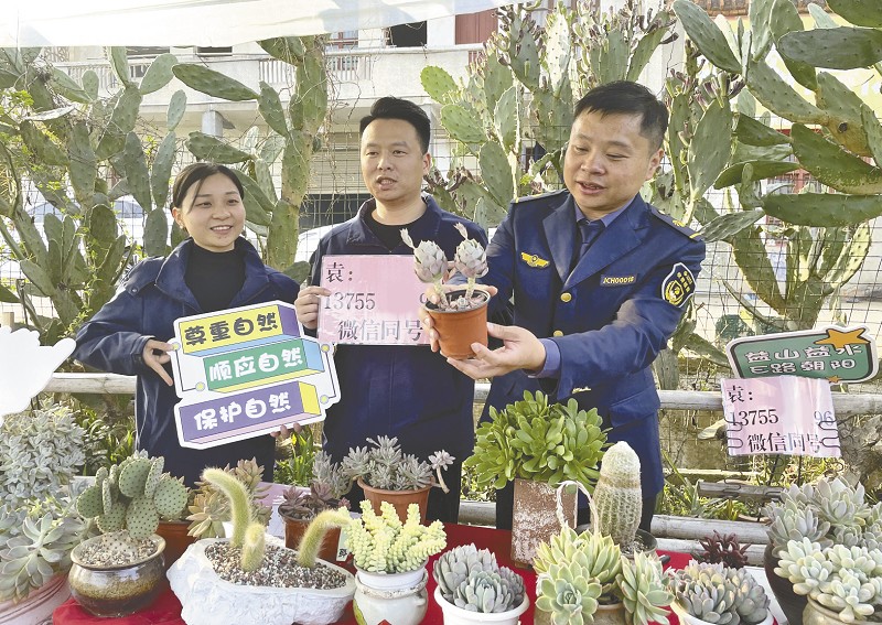 在沅江南收费站广场,工作人员还将袁立新的多肉小货柜摆到了路口一侧,并在亲手制作的简易花瓶上写下他的联系方式,向过往司乘人员进行宣传。“谢谢你们教我做电商直播,帮我拓宽了多肉销路,太感谢了!”事后,袁立新激动地比划着说。