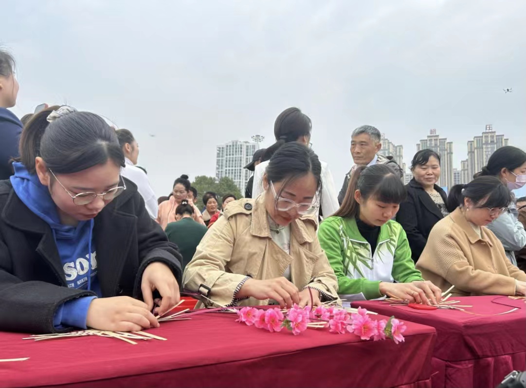 随着《桃花江是美人窝》的旋律响起,身着旗袍的女子款款走来,千人汉服旗袍与竹林相映衬,呈现了一道靓丽风景。通过视频连线,舞台主会场与各分会场频频互动。在“桃花江擂茶佳丽”大赛现场,女子们麻利地转动擂茶棒,茶香氤氲。在“女神一起玩竹编”趣味赛现场,女子们动作娴熟,编织的竹编篓、竹蜻蜓等竹工艺品精巧灵动。激烈角逐中,现场评选出“最美女神队”“最佳人气队”“擂茶女神”“竹编女神”等多个奖项。