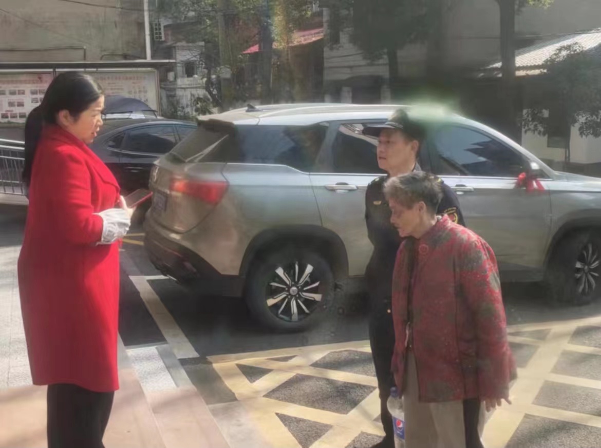 原来,许光辉和城管队员巡查途经S308线红绿灯时,发现一位老人正在路中间晃悠,神色恍惚。想到过往车辆川流不息,十分危险,队员们立即下车将老人牵到路旁。详细询问发现,老人除了知道家住铁铺岭外,其他信息一问三不知,队员们怀疑老人可能患有阿尔茨海默症。无奈之下,大家只得来社区求助。