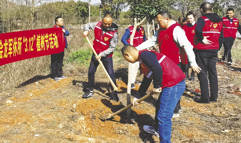 种一抹新绿,守一片青山。3月13日,为切实提升党员群众保护环境的意识,增强支部凝聚力,市会龙军休所组织全体党员来到赫山区会龙山街道黄泥湖村,开展“植此青绿,共护地球”植树活动。经过大家的共同努力,一棵棵树苗整齐有序,迎风挺立,为初春的大地再添新绿。