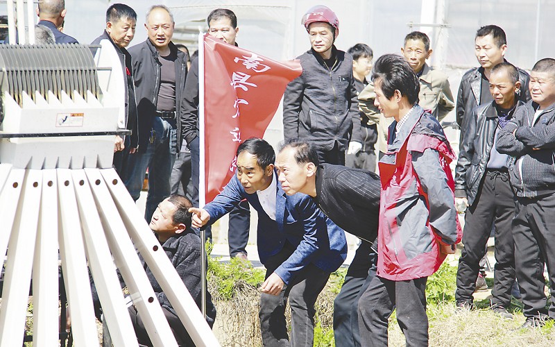 3月14日,在南县华阁镇天然港村的一丘秧田里,一台抛秧机抓紧开展机抛秧作业,3亩多早稻田很快种上了秧苗。当天,南县机抛秧技术应用与技能培训现场演示会如期举行,全县12个乡镇的农机专干、种植合作社代表、农机大户、种粮大户等100多人参加活动。