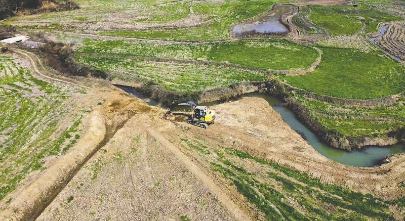 鸾凤山村是半山半丘陵地貌,农田基本呈梯田状态,分布零散,不适合现代机械化种植。为提高农业效益,2月下旬,蔡立新开始进行高标准农田建设。经过施工,这里的十八块细碎土地最终合并成四大块。“零星耕地集中连片后,适合机械化生产,亩产收益也能提高。”蔡立新说。