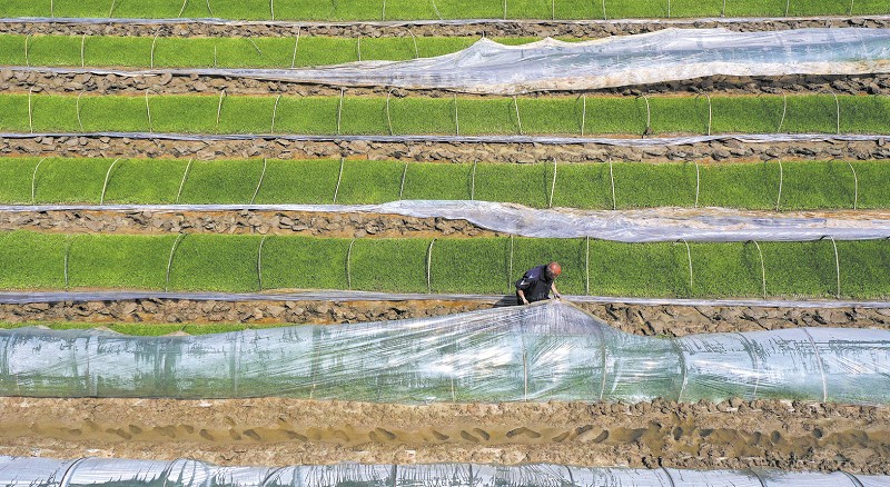 在新桥河镇廖河村,种粮大户欧阳国钦的秧田已经开始揭膜通风,锻炼秧苗适应外界环境的能力。当日,农技人员在田间测量秧田面积时,发现秧苗长势较快,基本到了三叶一心生长阶段,便提醒欧阳国钦尽快揭膜昼夜通风,自然炼苗。