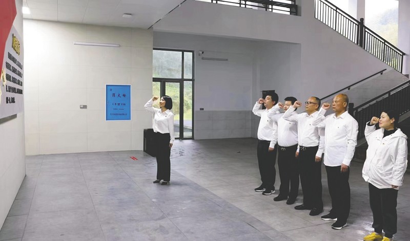 桃江县红十字会工作人员在张子清烈士纪念馆重温入党誓词。