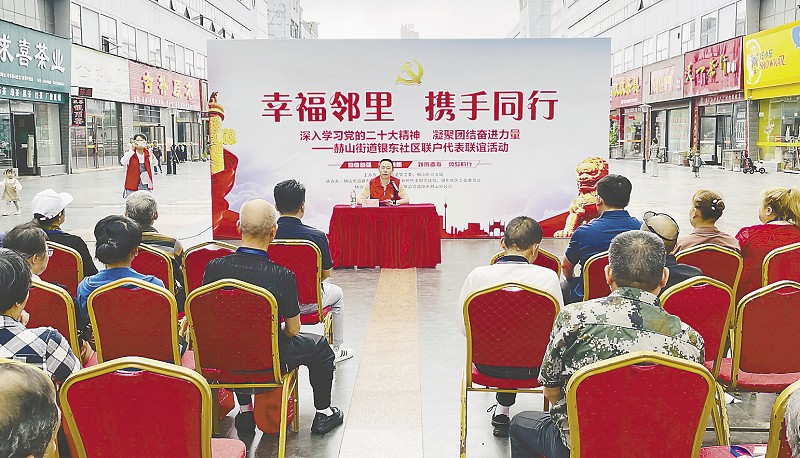 “邻里之间要以和为贵,发生纠纷时,应冷静处理。”4月19日,“‘幸福邻里 携手同行’学习党的二十大精神,凝聚团结奋进力量”联谊活动现场,蒋梦秋律师用鲜活的事例和接地气的语言宣讲党的二十大精神。活动在益阳茶业市场举行,银东社区200余联户居民代表参加。
