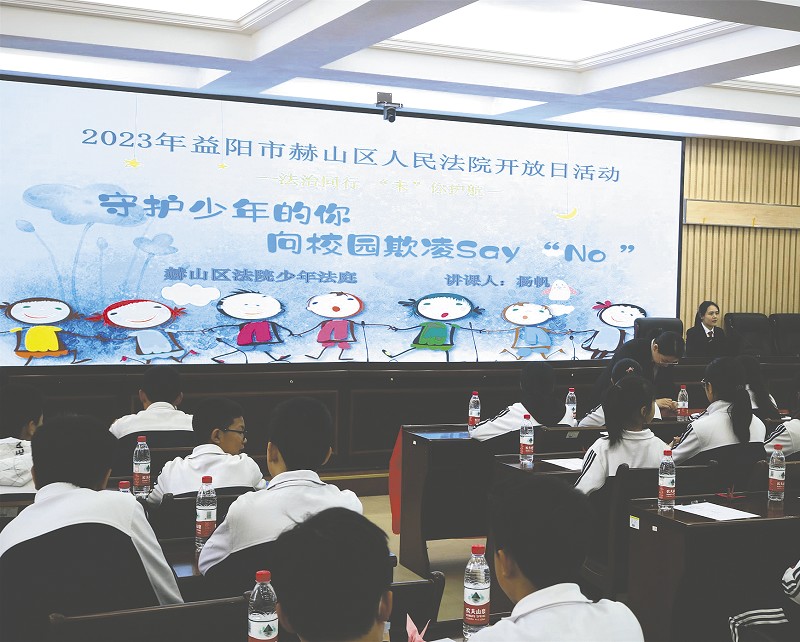 4月24日,赫山区梓山湖学校60余名师生走进赫山区人民法院,了解法院工作,体验法庭氛围,听取法治主题宣教,“零距离”感受阳光司法。