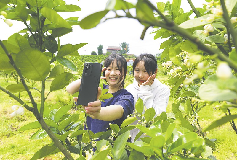 近日,沅江市新湾镇连绵起伏的橘园里,赏花闻香的市民纷至沓来。在莲花村的橘树下,一拨拨游客拍照、直播,欢声笑语伴随浓郁的芳香,飘散到很远很远。